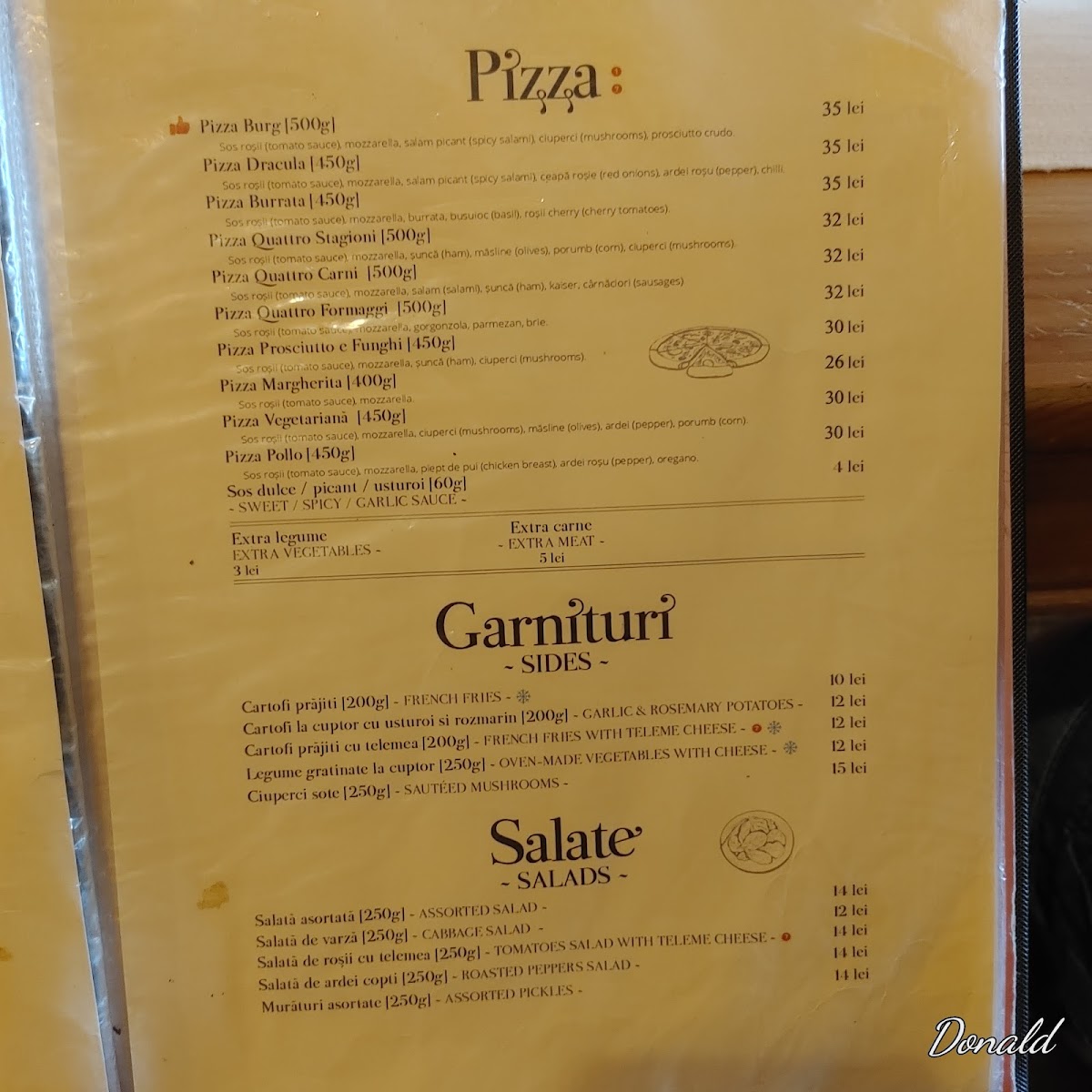 Located in the heart of Bran, Romania, BURG RESTAURANT invites food lovers to indulge in traditional Romanian cuisine with a modern twist. The menu boasts an array of hearty dishes that cater to every palate. Customers rave about the flavorful pork stew, savory goulash, and succulent lamb shank, all crafted with fresh ingredients. For a lighter option, the vibrant salads and gourmet pizzas provide delightful variety.